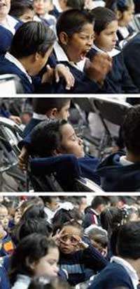 En esta primaria, ubicada en la delegación Benito Juárez, que gobierna Acción Nacional, los niños recibieron al presidente y a su esposa, Marta Sahagún, con aplausos. El entusiasmo se diluyó en poco tiempo, pues los pequeños, cuando el Ejecutivo dio su mensaje, ya habían dejado de poner atención.