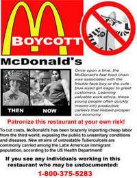 "No hace mucho, McDonald's era una institución que enseñaba a nuestros jóvenes ética en el trabajo antes de que eligieran su carrera profesional", señala el website Boicot contra McDonald's, que exhorta a denunciar indocumentados que trabajen en esos restaurantes.