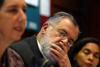 El presidente de la CNDH, Jos�uis Soberanes, escucha cuestionamientos de diputadas sobre las recomendaciones ignoradas por funcionarios p�os FOTO Jes�llaseca
