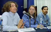 Blanca Hern�ez, Luisa P�z y Abdall�Guzm�ayer ante la prensa FOTO Mar�Mel�rez Parada