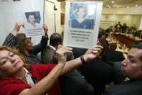 Familiares de desaparecidos se manifestaron ayer en el Senado de la Rep�a, en el contexto de la comparecencia del procurador general de la Rep�a, Daniel Cabeza de Vaca, ante ese cuerpo legislativo FOTO Carlos Ramos Mamahua
