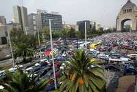 Plant�e integrantes de la Uni�ampesina Democr�ca en el Monumento a la Revoluci�ara pedir la legalizaci�e sus autom�es FOTO Guillermo Sologuren