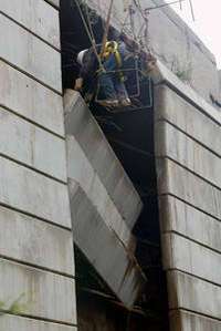 Trabajos en el terrapl�del puente Jaime Sabines, en la delegaci�uajimalpa, del cual se desprendieron seis bloques de concreto, al parecer por una filtraci�e agua FOTO Cristina Rodr�ez