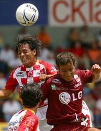 Alejandro Villalobos, de Tecos (izquierda) gana en la disputa del bal� Luis Gabriel Rey, de Monarcas FOTO Reuters