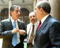 Jes�tega, Armando Quintero y Pablo G�, aspirantes a contender contra Marcelo Ebrard Casaubon por la candidatura del PRD a la Jefatura de Gobierno del Distrito Federal, conversaron ayer antes del debate entre los tres en el Club de Periodistas FOTO Marco Pel�