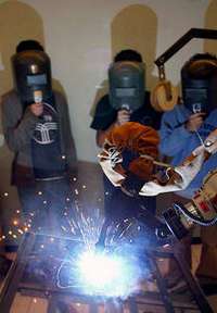 Estudiantes observan la operaci�e un robot industrial en los laboratorios de manufactura avanzada de la Facultad de Ingenier�de la UNAM FOTO Marco Pel�
