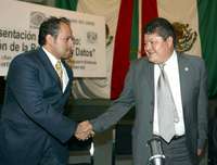 El maestro del IPN Sergio Vidal Beltr�y el diputado perredista Carlos Reyes G�z presentaron ayer el proyecto de instalaci�e la red de voz y datos en la Asamblea Legislativa FOTO Mar�Luisa Severiano