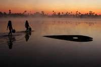 De exitosa fue calificada la primera expedici�ient�ca a la Amazonia peruana. En la imagen: esta ind�nas llevan agua del lago Opatse en el festival Kuarup, en Kuikuro, de la alta Amazonia en Brasil. La celebraci�s en honor de los h�es muertos FOTO Ap