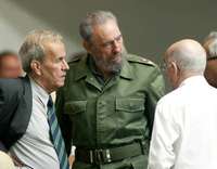 El l�r de la Asamblea Nacional del Poder Popular, Ricardo Alarc�el presidente Fidel Castro y el dirigente comunista Jos�achado, ayer en La Habana durante la sesi�el Parlamento FOTO Ap