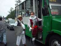 Nezahualcóyotl, Mex., 3 de septiembre. Con un poco de suerte se les puede ver en los tianguis, las escuelas o en los microbuses. Son dos personajes con vestimentas raras, sus diálogos dejan incrédulos a quienes les observan y les escuchan. Son Don Quijote de la Mancha y Sancho Panza, un montaje callejero representado por dos profesionales del teatro, quienes se sumaron a los festejos en Ciudad Nezahualcóyotl por los 400 años de la publicación de la obra de Miguel de Cervantes.