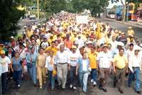 Tepic, Nay., 4 de septiembre. Unos cinco mil simpatizantes de la Alianza por Nayarit (PRD-PT-Partido de la Revolución Socialista), encabezados por Miguel Angel Navarro Quintero, ex candidato de esa coalición al gobierno del estado, participaron hoy en la denominada Marcha de la Legalidad, que culminó con un mitin en la Plaza de los Constituyentes.