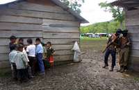 Ni�compran comida mientras milicianos zapatistas vigilan la reuni�n la localidad de San Manuel FOTO V�or Camacho
