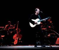 A Serrat le encant� disco. Se emocion�rgulloso de que los artistas cubanos lo quisieran interpretar, dijo Marcela Medina, directora de la distribuidora. En la imagen, el m� catal�durante su actuaci�n cuba en 2001
