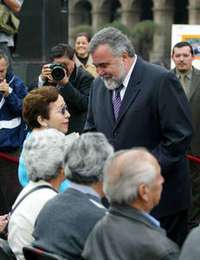 El jefe de Gobierno, Alejandro Encinas, entreg�er credenciales de apoyo econ�o a personas mayores de 70 a�FOTO Luis Humberto Gonz�z