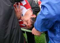 Carlos Azcurra, del club San Mart�de Mendoza de la divisi�e ascenso de Argentina, se encuentra grave, luego de que el domingo fue agredido por polic� con balas de goma FOTO Ap