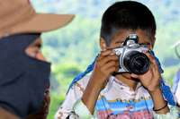 Poblado Autónomo Zapatista Javier Hernández. 12 de septiembre. El compa Lino no es de aquí sino de otro poblado, pero puso su puesto de comida con toda su familia: "Está chingón la reunión, todo este gente con un mismo pensamiento. Eso da fuerza". Al decirlo aprieta y alza el puño. Sonríen él y sus arrugas. Tras la tabla que hace las veces de mostrador en su puestecito de lámina, lazo y vara, atienden los hijos y las hijas y por ahí andan también sus nietos.