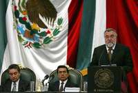 El jefe de Gobierno capitalino, Alejandro Encinas, rinde su informe ante la ALDF. Lo acompa�en el pres�um Jos�uadalupe Carrera Dom�uez, titular del Tribunal Superior de Justicia, y el diputado Miguel Angel Solares, presidente de la mesa directiva del �no legislativo FOTO Mar�Luisa Severiano