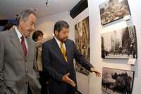 El rector de la UNAM, Juan Ram�e la Fuente, inaugur�er la exposici�obre sismos en el museo Universum y coment�n Ren�rucker el material gr�co proporcionado por La Jornada FOTO Notimex