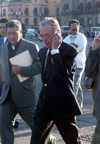 El periodista Jacobo Zabludovsky camina por el Z�o, desde donde transmiti�rte del programa de radio conmemorativo de los 20 a�de los sismos de 85 FOTO Cristina Rodr�ez