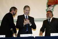 Congreso de Economistas de Am�ca Latina y el Caribe,en la imagen,el presidente del Colegio Nacional de Economistas, Oscar M Guerra; el secretario de Relaciones Exteriores, Luis Ernesto Derbez, y el jefe de Gobierno del DF, Alejandro Encinas FOTO Jes�llaseca