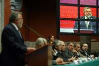 Alejandro Encinas, jefe de Gobierno del DF, inaugur�er en el Museo de la Ciudad de M�co las sesiones de trabajo hacia el Foro Mundial del Agua, que se realizar�n 2006 FOTO Cristina Rodr�ez