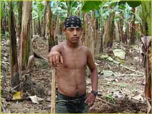 Inició en el banano en la década de los 70 y lo hizo durante 21 años. Trabajaba en el tratamiento de las fincas con el químico. No les advirtieron del riesgo que corrían y no les dieron en ningún momento equipos de protección. El contacto lo sufría al manipular el DBCP en los barriles.