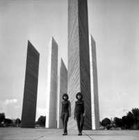 En su obra, Antonio Caballero siempre busc�e destacara el paisaje de la ciudad de M�co, como en esta imagen donde sobresalen las Torres de Sat�te. Las hermanitas Jim�z, reportaje para la revista Nocturno, ca 1965 FOTO Antonio Caballero