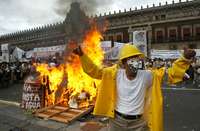 Mientras en la plancha se quemaban diablitos con las figuras de Bush y Fox, se soltaban globos verdes y se paseaba un gran "dragón privatizador", el dirigente de los Telefonistas, Francisco Hernández Juárez, señaló que "así como esta administración no ha podido ni podrá sacar adelante ninguna de sus reformas, tampoco ha podido o ha sabido gobernar".