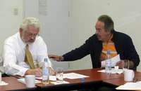 Gustavo Chapela Casta�s y Ren�rucker Col�en la reuni�ostenida en la Academia Mexicana de Ciencias FOTO Cristina Rodr�ez