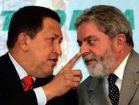 Los presidentes de Venezuela, Hugo Ch�z, y de Brasil, Luiz Inacio Lula da Silva, durante la cumbre de la Comunidad Sudamericana de Naciones FOTO Reuters