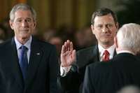 Horas después, Roberts prestó juramento ante el juez John Paul Stevens, en ceremonia presidida por Bush en la Casa Blanca, y dijo: "Veo el voto de esta mañana como una confirmación de lo que es, para mí, un principio fundamental: que juzgar es diferente a hacer política". Bush, por su parte, afirmó que su elegido es un hombre "de integridad, profunda humildad y talento poco común".