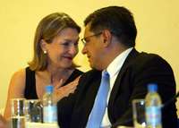 La representante de vecinos de Polanco, Mar�Teresa Hernand, y el secretario de Seguridad P�a del DF, Joel Ortega, conversan durante el encuentro con residentes de esa colonia en torno a la vigilancia en la zona FOTO Carlos Cisneros
