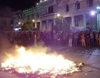 Normalistas, durante la quema de propaganda electoral en el Z�o de Chilpancingo, Guerrero, al continuar sus protestas para exigir al gobierno de Zeferino Torreblanca la entrega de unas 700 plazas para egresados. La protesta se llev�cabo a unas horas de la elecci�e alcaldes y diputados locales en la entidad. Los normalistas aseguraron que de no resolverse su petici�oicotear�la jornada electoral FOTO Oscar Alvarado
