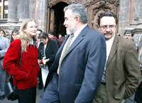 La secretaria de Desarrollo Urbano y Vivienda, Laura Itzel Castillo; el jefe de Gobierno, Alejandro Encinas, y el director del INVI, David Cervantes, en el Museo de la Ciudad de M�co FOTO Guillermo Sologuren