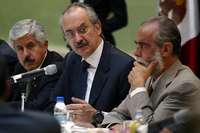 El secretario de Hacienda, Francisco Gil D�, al comparecer en el Senado. En el presidium lo acompa�iego Fern�ez de Cevallos FOTO Jes�llaseca