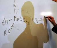 Richard Schrock ilustra parte de la teor�que le hizo acreedor del Nobel FOTO Reuters