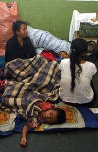 Ver�a Francisca Ruiz P�z, acompa� de sus tres hijos en el albergue de Frontera Comalapa, que ha recibido a decenas de familias de este municipio, de Chicomuselo, Amatenango de la Frontera e incluso de Guatemala FOTO Victor Camacho