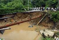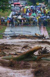 Soldados y automovilistas observan la destrucci�ausada por las inundaciones en la carretera Acapulco-Zihuatanejo FOTO Ap