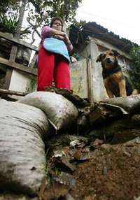Al pie de una casa apuntalada con costales con tierra, en la colonia Paraje de las Pe�s Tlacoyac FOTO Francisco Olvera