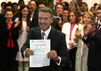 Roberto Madrazo acudi�la sede del PRI con su esposa y sus cuatro hijos. Casi al finalizar el tr�te mostr�la prensa su hoja de registro FOTO Jos�ntonio L�