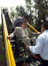 Encabezados por diputados del PAN, discapacitados de ese partido que utilizan el Metrob�straron ayer que este transporte y sus instalaciones no fueron dise�s para ellos FOTO Guillermo Sologuren