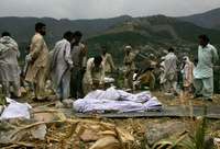 La gente se reunía alrededor de un cadáver que rescataron de las ruinas. Su rostro se volvía negro a medida que se descomponía. "No sabemos quién es", decía Syed Hassan Ali, maestro de inglés y uno de los pocos sobrevivientes de la escuela. "Nadie lo reconoce. No sabemos quiénes son sus padres ni si ellos viven".