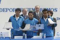 Edgar Andrade, C�r Villaluz y Pedro Valverde, durante el reconocimiento de la directiva del Cruz Azul, en La Noria FOTO Jes�llaseca