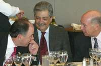 El director general de Fonatur, John McCarthy; el secretario de Turismo, Rodolfo Elizondo, y el presidente del CNET, Gordon F. Viberg, durante la clausura del Congreso Internacional de Turismo FOTO Guillermo Sologuren