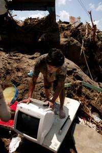 Habitantes de la colonia Obrera, en Tapachula, Chiapas, donde m�de 100 casas fueron sepultadas por el desborde del r�Coat� realizan labores de rescate FOTO Alfredo Dom�uez