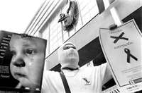 Manifestaci�e portadores de VIH frente a la sede del IMSS, en 2000 FOTO Jos�arlo Gonz�z