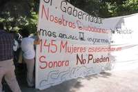 Hermosillo, Son., 13 de octubre. Elementos de la Policía Judicial de Sonora desalojaron a un grupo de integrantes de la organización Nosotras Ciudadanas por la No Violencia que intentó manifestarse en las instalaciones del centro de convenciones Expoforum, en el cual el gobernador Eduardo Bours Castelo rindió su segundo informe de gobierno, para exigir el esclarecimiento de 145 asesinatos contra mujeres perpetrados en cinco años recientes; al menos 50 por ciento de los casos se han documentado en la actual administración.