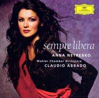 El nuevo disco de Anna Netrebko se titula sempre libera (Deutsche Gramophon) y es una enésima confirmación de su talento. Se trata del segundo recital de arias de ópera que graba, y reúne sus mejores momentos en los escenarios, iniciando precisamente con La Traviata y recorriendo el territorio del bel canto con títulos de Bellini (La sonnambula, I puritani), Donizetti (Lucia di Lammer-moor), Verdi (Otello) y Puccini (Gianni Schicchi).