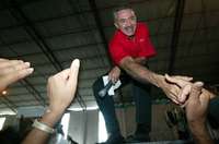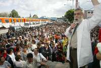 Ciudad Serdán, Puebla, 14 de octubre. Durante su recorrido por una de las regiones más pobres del estado de Puebla, Andrés Manuel López Obrador criticó el sistema político-económico que priva en México y solicitó a los campesinos e indígenas que participen en un cambio profundo de todas las estructuras caducas del poder.