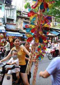En las calles de Hanoi, una familia vietnamita compra decoraciones para el festival de oto�ue se celebr� pasado septiembre. El Banco Estatal de Vietnam ha comenzado a reducir el cr�to, pero la demanda de los consumidores permanece animada FOTO Ap